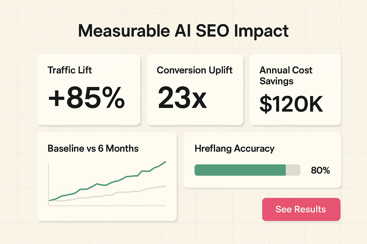 A metrics-driven dashboard demonstrating measurable benefits—use this to build the business case and prioritize AI-driven international SEO investments.